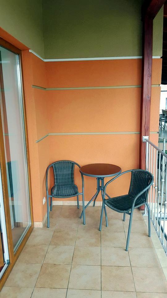 Pokój dwuosobowy z balkonem/tarasem - duży (ok.20m2) pokój z łazienką, z balkonem, lodówką, płaskim 32" telewizorem, czajnikiem i ręcznikami. Łóżka mogą być w wersji małżeńskiej (szer.180cm) lub dwóch łóżek pojedynczych (szer.90cm).