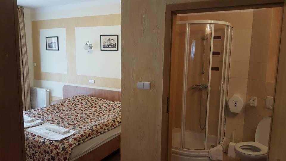 Pokój dwuosobowy z balkonem/tarasem - duży (ok.20m2) pokój z łazienką, z balkonem, lodówką, płaskim 32" telewizorem, czajnikiem i ręcznikami. Łóżka mogą być w wersji małżeńskiej (szer.180cm) lub dwóch łóżek pojedynczych (szer.90cm).